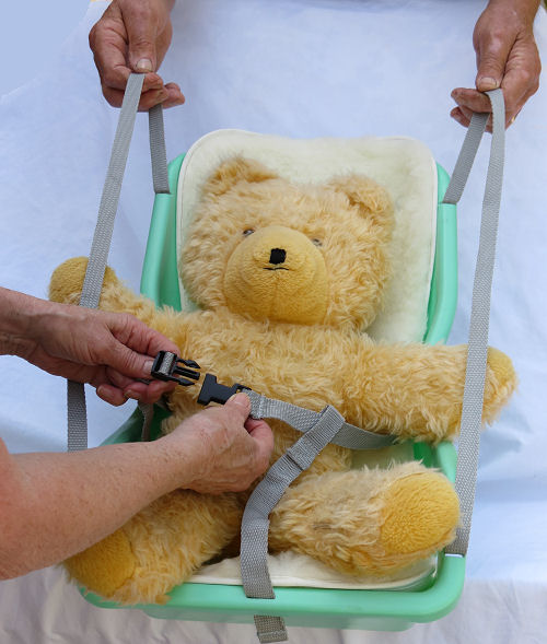 Carry Straps The Chair and Baby can be safely and easily carried by the Straps fitted to the side of the Frazer Chair. Note: Ensure if the Baby is in the Chair the Harness is secured around the Child !